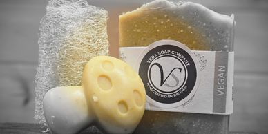 Soap Gift Set Collection contains 1 Artisan soap, a Guest soap and luffa while supplies last.