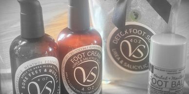 Foot Care Collection Gift Set contains 4 oz Detox Foot Soak, Sore Feet & Muscle Menthol Gel, Foot Cream & Foot Balm