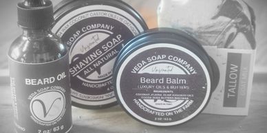 Gentleman's Collection Gift Set contains an artisan Soap Bar, Beard Oil, Shaving Soap and Beard Balm.